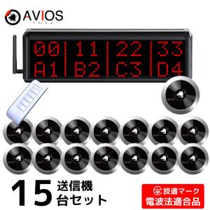 飲食店ベル 呼び出しベル 8番号表示 ワイヤレスチャイム 400D 送信ボタン15個 居酒屋 レストラン カフェ クリニック アドオンシステム AVIOS