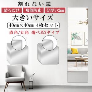 アクリルミラー 鏡 姿見 割れない 大きいサイズ 40×40cm 4枚セット 両面シール付き 貼るだけ 安全 丸角 直角 飛散防止 全身 DIY 浴室 お風呂