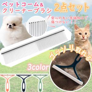 ステンレス製ペットコーム ブラシ 2点セット 猫 犬 くし クリーナー トリミング ブラッシング トリマー ドッグ キャット 掃除 抜け毛 毛並み 水洗い