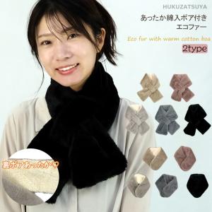 ふわふわ あったか 綿入 ボア付き 吸湿発熱 エコファー マフラー マグネット 差し込み 婦人 レディース 女性 大人 無地 むじ フェイク ファー 防寒 暖かい