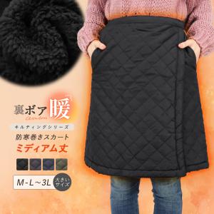 裏ボア 巻きスカート キルティング ミディアム丈 スカート 裏起毛 ボア 大きいサイズ LL 3L 撥水 静電気防止 防寒 防寒対策 厚手 軽量 ボトムス レディース *00