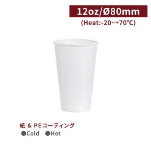 CA12138【Cold用 紙コップ -白 12oz/360ml】口径80*119mm PE両面コーティング 1箱1000個/1袋50個