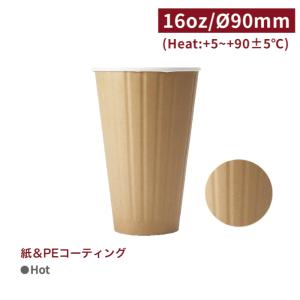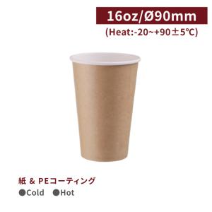 CA16105【Hot&Cold対応 紙コップ -クラフト 16oz/480ml】口径90mm PE両面コーティング 1箱1000個/1袋50個