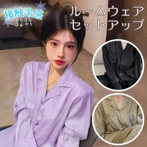 ルームウェア セットアップ レディース 長袖 長ズボン 接触冷感 アイスシルク さらさら パジャマ エレガント 大人 前開き おしゃれ ゆったり 大きい 部屋着 入院