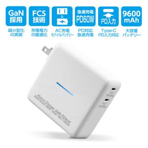 【在庫処分】【PSEマーク表記済み】GaN採用ハイブリット型モバイルバッテリー9600mAh 大容量 コンセント充電 コンセント付 Type-C 2ポート スマートフォン