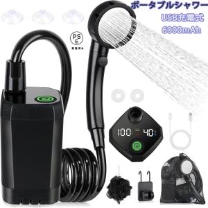ポータブルシャワー 簡易シャワー 電動 USB充電式 最大連続150分 アウトドア 洗車 温水対応 携帯 水圧調整 水量調節 海 川遊び キャンプ 風呂 防災 停電時用