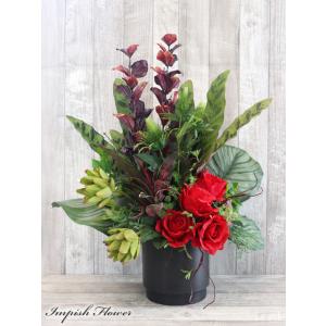 バラ 造花 インテリア 赤 大きい アーティフィシャルフラワー 大型 高級 おしゃれ フラワーアレンジメント 豪華 B-574