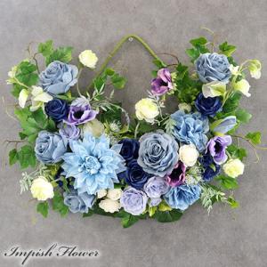造花 壁掛け インテリア リース 青 アーティフィシャルフラワー 特大 豪華 アレンジメント W-1045