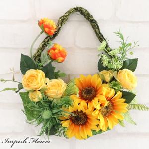 ひまわり 造花 壁掛け インテリア リース アーティフィシャルフラワー 豪華 アレンジメント W-1052