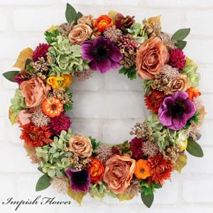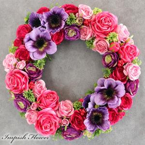 リース 造花 壁掛け 豪華 フラワーリース アーティフィシャルフラワー 玄関 おしゃれ W-676