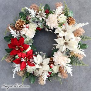 クリスマスリース 豪華 造花 壁掛け 50cm クリスマス リース 大きい 大型 おしゃれ 玄関 W-1088y