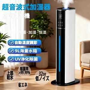 加湿器 超音波式 大型加湿器 タワー型 空気清浄機 9L大容量 4重除菌 48H連続運転 uv除菌 マイナスイオン 自動湿度調節 上部給水 低騒音 花粉 省エネ 乾燥対策