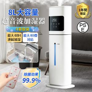 加湿器 超音波式 大型加湿器 タワー型 空気清浄機 8L大容量 40畳対応 連続加湿 3段階調節可能 UV除菌 湿度設定 静音 上から注水 乾燥対策 省エネ 寝室 家庭用