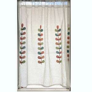 カフェカーテン のれん カラフル葉 レースカーテン 幅100cm×丈106cm 刺繍 シンプル 小窓 突っ張り棒 出窓 仕切り