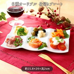 6種 オードブル トレー 仕切り プレート 15.8×24cm 磁器 電子レンジ対応 食洗機対応 6品皿 仕切り皿 角皿 皿 ワンプレート 洋白 おしゃれ 爆買