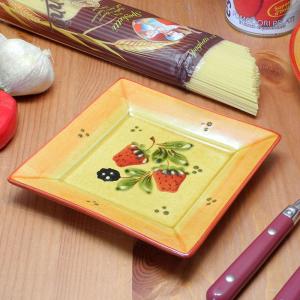 ポルトガル製 パン皿 スクエアプレート(15cm角) おしゃれ 取り皿 手描き ブラックベリー いちご柄 角皿 洋食器 南欧雑貨 pfa-3fs