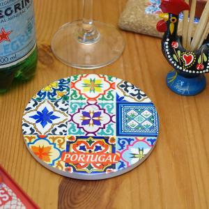 ポルトガル製 コースター 10.5cm コップ敷き 茶托 アズレージョ 耐熱 地中海 デザイン 青 黄 絵タイル ミニナベシキ ブルー pmc-c3345