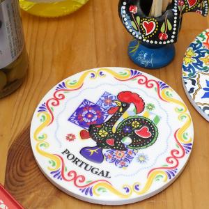 ポルトガル製 耐熱 陶器 コースター 10.5cm コップ敷き 茶托 幸せを呼ぶ ニワトリ 白 絵タイル ミニナベシキ pmc-c3617
