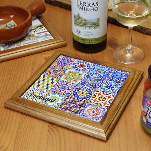 ポルトガル製 ポットプレート 19cm 鍋敷き アズレージョ タイル カラフル 地中海 デザインタイル 耐熱 壁掛け 絵タイル ウッドフレーム お土産 pmc-s9br