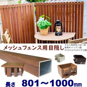メッシュフェンス用目隠し 木目調 後付け 簡単取付 チーク アルミ柱材30X40XL800mm 厚み1.8mm キャップ付 さくさくエクステリアセット