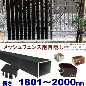メッシュフェンス用目隠し 木目調 後付け 簡単取付 ダーク アルミ柱材30X40XL1800mm 厚み1.8mm キャップ付 さくさくエクステリアセット