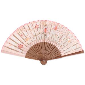 【化粧箱】女性用京扇子 透かし彫り 和紙絹 桜 ピンク (Ec19)