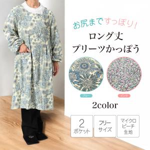 割烹着 おしゃれ 大きいサイズ 保育士 かっぽう着 ロング丈 花柄 子供 離乳食 乳児 ロング丈プリーツかっぽう