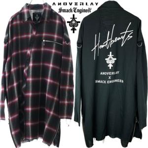 ANOVERLAY (lynch.晁直) × SMACK ENGINEER (スマックエンジニア)「OBLIQUE SHIRTS COAT」アンオーバーレイ 限定コラボ ロングシャツ 黒 ブラック 赤 チェック