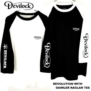 DEVILOCK デビロック「REVOLUTION WITH BOTH LOGO RAGLAN TEE」ラグランTシャツ 七分袖 黒白 ブラックホワイト スカル ドクロ メンズレディース Rogia