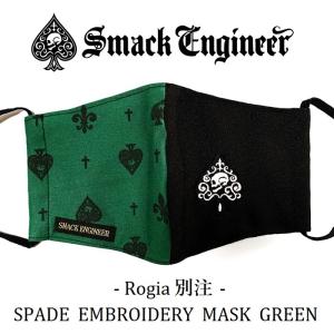 (30%OFF) SMACK ENGINEER スマックエンジニア「Rogia限定 SPADE EMBROIDERY MASK GN」バイカラー布マスク 厚手 モノグラム 緑 黒 グリーン ブラック V系