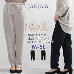テーパードパンツ 大きいサイズ レディース ロング丈 ドロストタック ウエストゴム ボトムス M LL 3L 4L 5L 送料無料※沖縄/北海道対象外