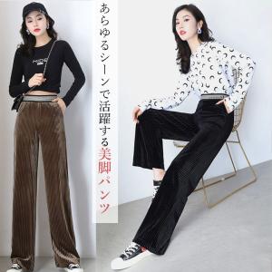 ベロアパンツ レディース ズボン 春秋冬 パンツ リラックスパンツ ベルベット ワイドパンツ ガウチョパンツ ロングパンツ 柔らか ゴム入りウェスト 体型カバー