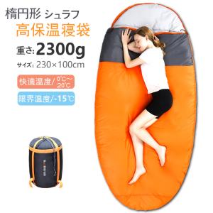 シュラフ 保温 寝袋 楕円形 人工ダウン コンパクト アウトドア アウトドア寝具 キャンプ 防災 登山 車中泊 軽量 中綿 2.3KG 防水 春夏秋冬使用可能 収納袋付き