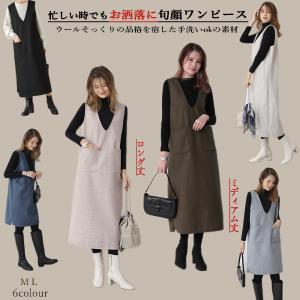 ジャンパースカート 秋冬 ロング ツイードジャンパースカート 50代 40代 60代 春秋 ワンピース マキシ丈スカート ノースリーブ レディース Vネック Iライン