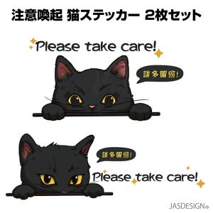 猫 ステッカー 車 追突注意 ネコ バイク ヘルメット 黒猫 シール 壁 スマホ PC かわいい おもしろ カッティングステッカー デカール ブラック 2枚セット JM-386