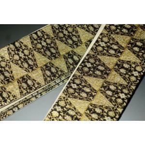 拾11293 女流・袴下帯 シルク化繊К黒地金襴亀甲鱗文様 新品