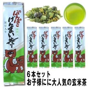 ぽんぽこ玄米茶 6本セット 黒豆 抹茶入り 茶葉 お茶 日本茶 送料無料