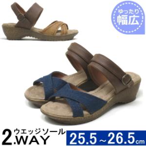 サンダル レディース 大きいサイズ 25.5cm 26cm 26.5cm 対応 幅広 2WAY ミュール ウェッジソールサンダル 大きいサイズサンダル 26センチ 5195TW