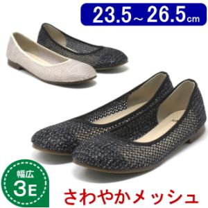 大きいサイズ 靴 25.5cm 26cm 26.5cm 対応 幅広 ワイズ 3E コットン メッシュ ぺたんこ パンプス 25センチ靴 26センチ靴 25センチパンプス レディース靴 1499TC