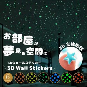 ウォールステッカー 3d 立体 星 蛍光シール プラネタリウム 綺麗 スター スイッチ周り 蓄光 夜光 星降る夜 惑星 光る 衛星 地球 隕石 宇宙 インテリア 夜空