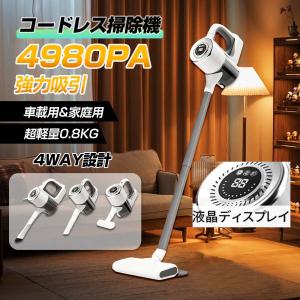 掃除機 コードレス 軽量 ハンディ 充電式 自走式 4WAY 49800Pa強力吸引 5400mAh 大容量バッテリー HEPA 一人暮らし 静音 車載・家庭両用 3段階吸引力調節