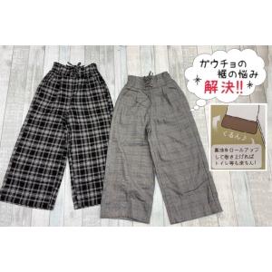 あったか ガウチョ 140cm 150cm 160cm チェック柄 ウエストゴム 裏起毛 裾付かない 裾まくり グレンチェック ブラックチェック 暖か 子供服 女の子 ジュニア