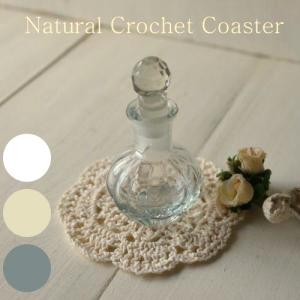 手編み クロシェ コットンコースター花モチーフ 3カラー(ホワイト・クリーム・グレー)