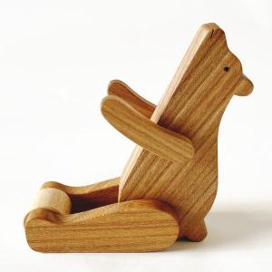 送料無料 木製 スマホ スタンド くまデザイン スマートフォン インテリア ウッドクラフト ナチュラル 置物 北海道製 日本製