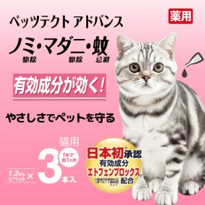猫 ノミ マダニ 蚊 駆除 猫ダニ 猫 ノミ取り薬 耳ダニ 虫ケア 忌避 有効成分 安心 スポット剤 滴下 薬用ペッツテクト アドバンス 猫用 3本入