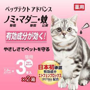 猫 ノミ マダニ 蚊 駆除 猫ダニ 猫 ノミ取り薬 耳ダニ 虫ケア 忌避 有効成分 安心 スポット剤 薬用ペッツテクト アドバンス 猫用 3本入×2箱
