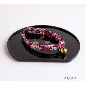 猫用 首輪 ハンドメイド セーフティバックル使用 3サイズから選べる ★ 江戸猫首輪(大輪の桜・紫) ★