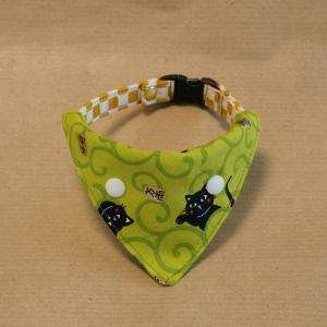 首輪用バンダナ 首輪にワンタッチでつけられるバンダナ ★猫と小判の唐草バンダナ(黄緑)★