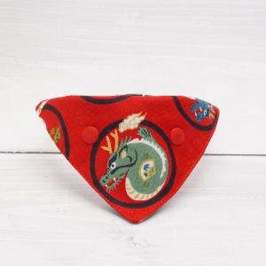 首輪用バンダナ 首輪にワンタッチでつけられるバンダナ ★カラフルな龍のバンダナ(赤)★