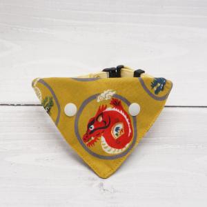 首輪用バンダナ 首輪にワンタッチでつけられるバンダナ ★カラフルな龍のバンダナ(芥子)★